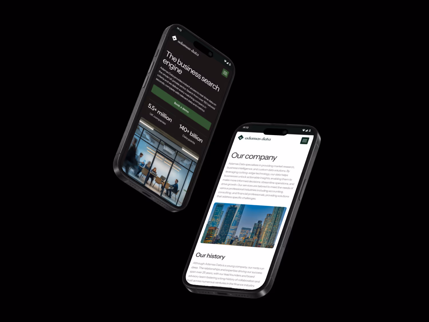 Adamas Data offers a business search engine that delivers real-time insights on 5.5 million UK companies. But their existing website didn’t reflect the clarity, speed or professionalism of the product. It lacked hierarchy, structure, and messaging that could speak to the wide range of users who rely on it for lead generation, research, and analysis.